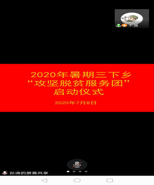 (通讯员:张小牧 张耀育)为积极响应国家脱贫攻坚政策,河南城建学院数理学院“攻坚脱贫服务团”于7月8日在线上举办2020年三下乡社会实践活动启动仪式。本次会议分为安全教育、项目简介、任务分配三个部分,由团队指导老师周树克主持。