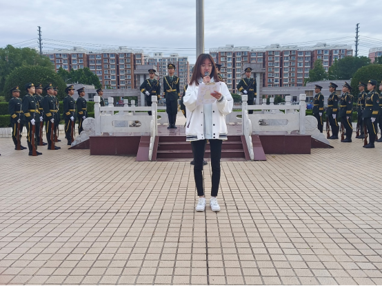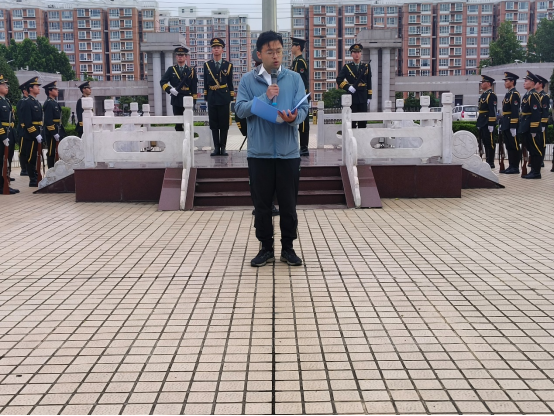 上午七点升旗仪式准时开始,国旗护卫队迈着铿锵有力的步伐将国旗护送进场。伴随着激昂的国歌声,鲜艳的五星红旗迎着朝阳缓缓升起,全体师生庄严肃立,行注目礼,奏唱国歌。深情地表达对祖国崇高的敬意和诚挚的祝福。随后,全体团员共同聆听了学生代表和教师代表在国旗下的演讲。教师代表高明阳以“红色的五月、奋斗的青春”作为宣讲主题,他列举伟人先辈、革命烈士、同龄榜样的英勇事迹,告诉在场的青年学子,应以理想信念去昭示奋斗目标,激励自己达到新的人生高度,将个人的发展与祖国和民族的未来紧密联系起来,要刻苦学习,不断提升自己的综合素质,为实现中华民族伟大复兴的中国梦而不懈奋斗。