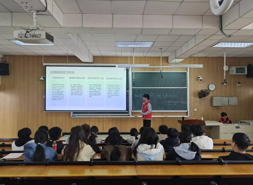 (通讯员 张小牧 申胜成)为进一步加强心理健康志愿服务队伍建设,提升心理素养与服务能力,2026年3月24日河南城建学院数理学院青年志愿者协会在七号楼组织开展“阳光使者”心理志愿服务专题培训,本次培训由学院学生会心理部周浩隆主讲,数理学院青年志愿者协会全体成员参与学习。