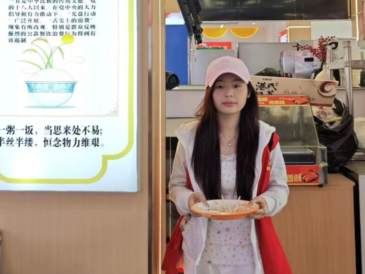 活动期间,志愿者们身着统一马甲,于用餐高峰时段在布芳园一楼食堂各点位有序开展工作。志愿者们主动靠前,在取餐区、餐具回收处及宣传点耐心引导同学们按需取餐、适量点餐,倡导杜绝餐饮浪费,自觉践行“光盘”理念。同时,通过现场讲解、发出文明倡议等方式,向过往师生宣传节约粮食的重要意义,劝阻铺张浪费行为,带动大家珍惜每一餐、节约每一粒粮。在志愿者的积极引导和示范带动下,越来越多同学主动加入“光盘”行列,现场文明用餐氛围浓厚,“浪费可耻、节约为荣”的理念进一步深入人心。