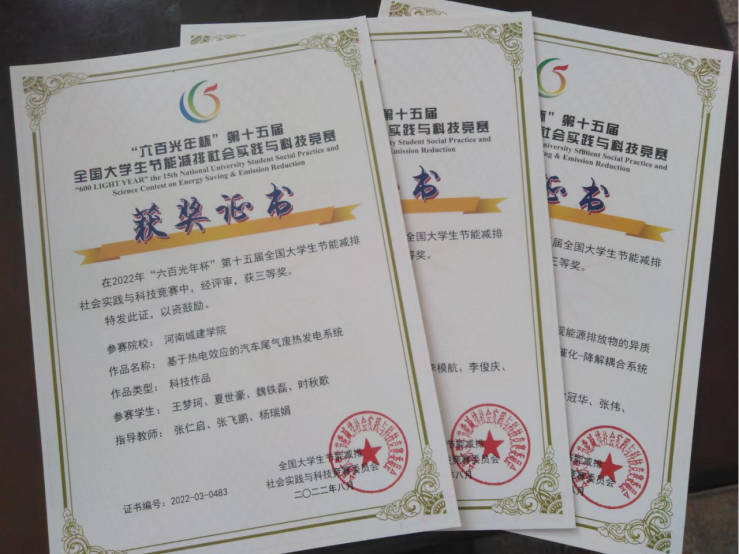 全国大学生节能减排社会实践与科技竞赛是由教育部高等教育司主办、唯一由高等教育司办公室主抓的全国大学生学科竞赛,为教育部确定的全国十大大学生学科竞赛之一,也是全国高校影响力最大的大学生科创竞赛之一。竞赛在“双碳”战略目标等国家重大需求指导下,以“节能减排,主动作为;实践创新,交融育人”为目标,以节能减排,绿色能源为主题,经过初评、会评以及终审、决赛,历时5个多月。经过我校的精心组织和认真选拔、团队成员团结合作,在老师的指导下获得参赛以来的最好成绩。经过此次竞赛,增加了与兄弟院校间的交流和沟通,相关的成果和作品在老师和学生团队间引起共鸣,对于老师的科研和学生的科技创新起到一定的促进作用。